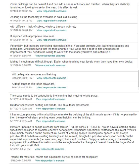 In terms of testing out the different processes in the real world, some were readily applicable to specific classroom teaching; others were better suited to implementing change in a physical space. Still others may work better for virtual spaces which are constrained by space, time or geography, so have had to wait (McIntosh, 2010, p. 33). Few places are as fortunate as The Works, where a holistic approach was undertaken to create a new virtual and physical educational experience.