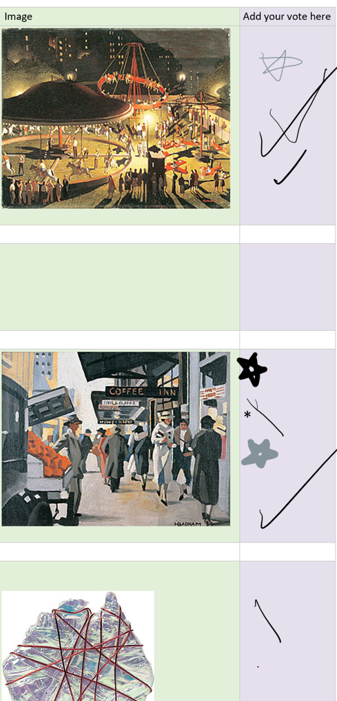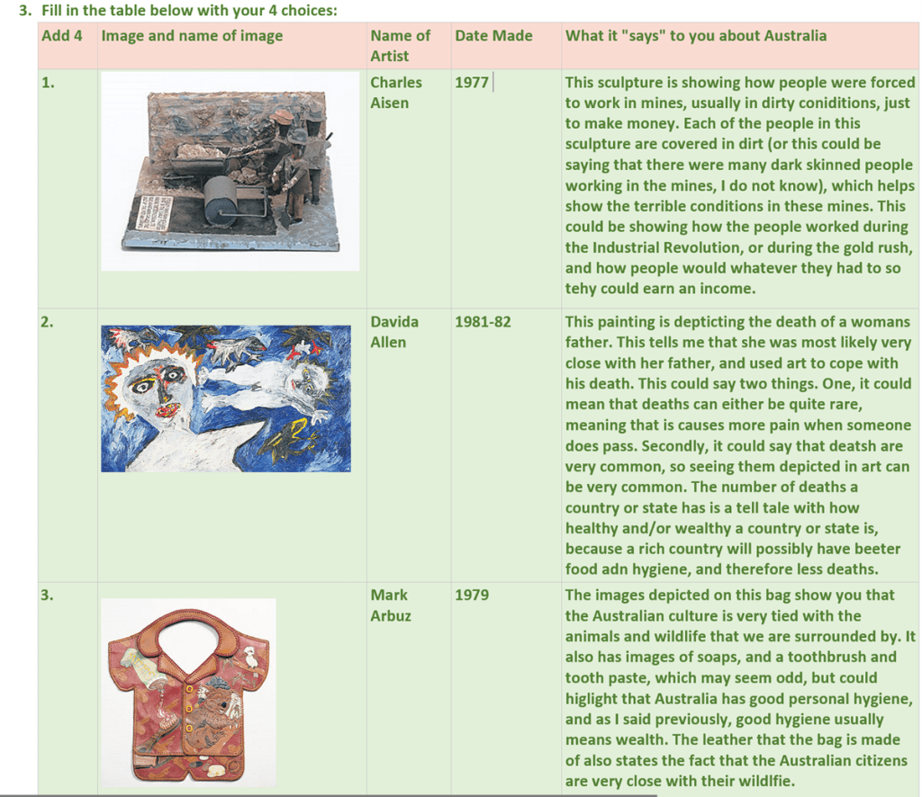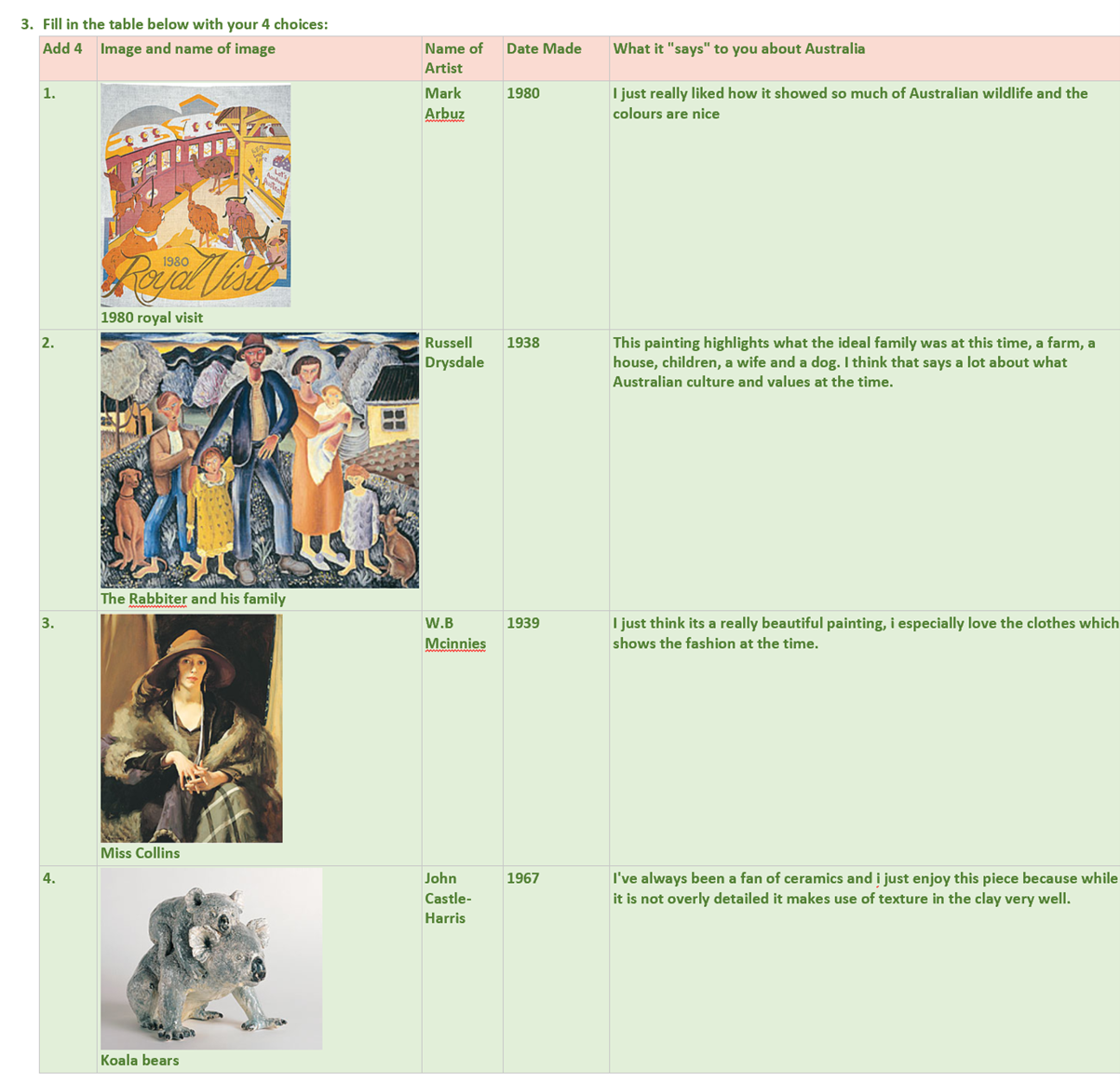 The second lesson of the week asked them to share and discuss one of the images they chose. Choices were shared on 4 pages within the Collaboration space. A number of students offered to talk about their choice and then students were asked to pick 4 favourites from those submitted.