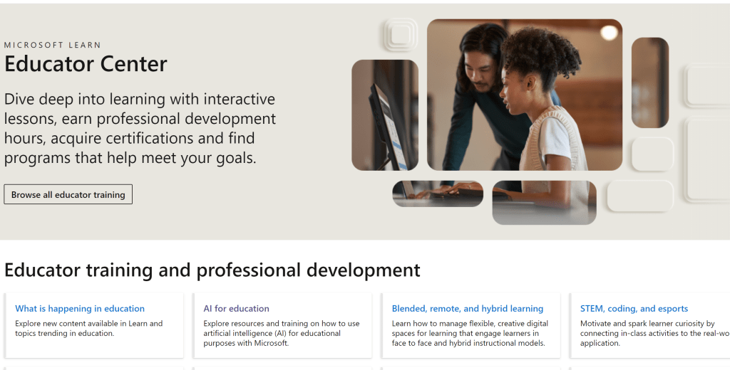 The offerings in Microsoft Learn are easy to use and offer practical advice to educators. You can find the landing age here: